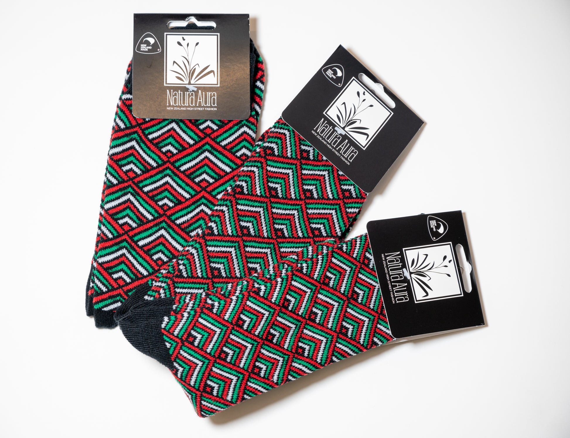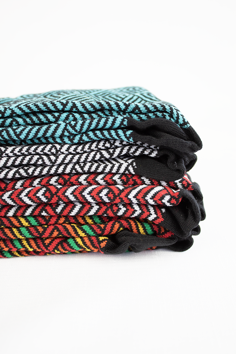 Natura Aura Unisex Sock Range features traditionally inspired Māori tribal patterns, which are renowned all over the world for their originality, complexity and strong lines. The vibrancy of the socks is inspired by the indigenous flora and fauna of Aotearoa and Polynesian.